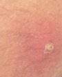 Pictures: Some of the many painful white volcano’s appearing all around the body and some of the flecks of skin peeling off the rear of my head.